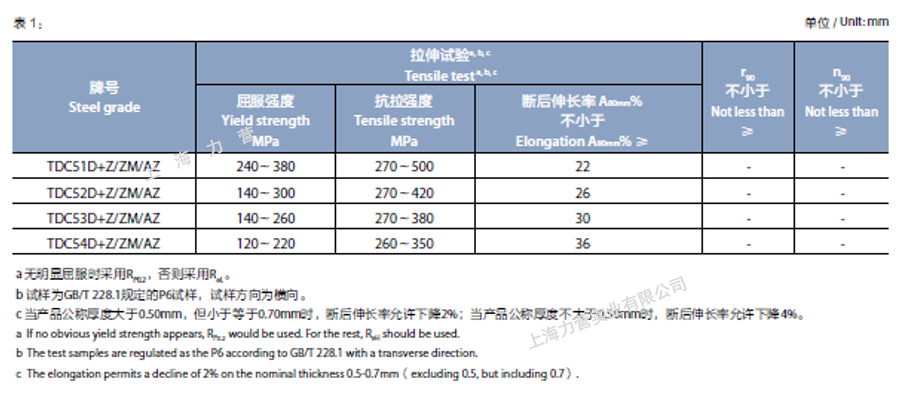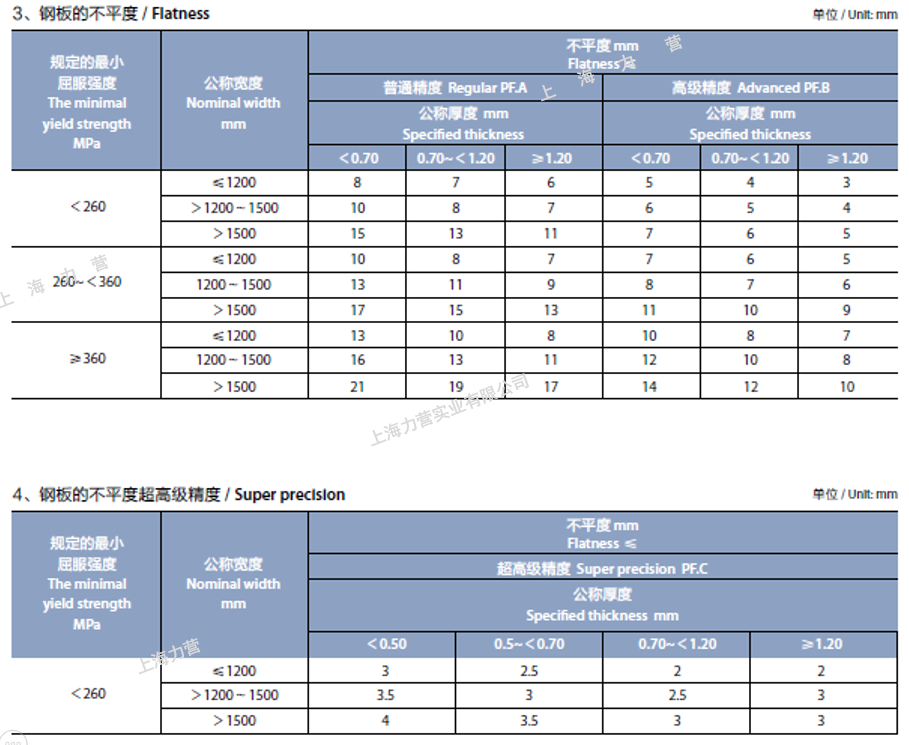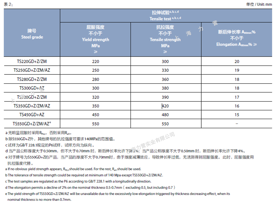 3、鍍鋁鋅、熱鍍鋅基板彩涂的不平度、力學(xué)性能按照相應(yīng)基板,下表數(shù)據(jù)供參考,具體以訂貨標準為準。